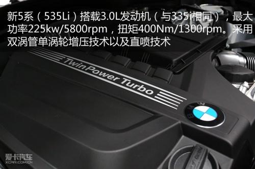 寶馬535Li車型采用直列六缸3.0L汽油發(fā)動(dòng)機(jī),搭載雙渦管單渦輪增壓技術(shù)、高精度直噴系統(tǒng)和Valvetronic完全可變電子氣門控制技術(shù),這款發(fā)動(dòng)機(jī)當(dāng)燃燒室在較低的負(fù)荷下部分充滿時(shí),壓電噴油嘴能保證噴射燃料的劑量,使直噴系統(tǒng)(HPI)控制燃料空氣混合物時(shí)的精確度達(dá)到2毫克汽油。