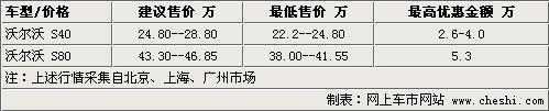 沃爾沃旗下大型豪華轎車S80在年內即將迎來2.0T引擎的升級換代,這與BMW新5系LI的產品換代有著相同的降價因素。另一方面,沃爾沃在國內的經銷商網點相對較少,客戶認知度還有待提升。盡管它的確是一款安全和豪華的轎車,但是目前大部分經銷商還是不得不以降價來吸引客戶的注意。沃爾沃另外一款S40轎車的售價達到了20-30萬元的區(qū)間,而在這一區(qū)間內下有日系的雅閣、凱美瑞,上有寶馬的3系奧迪吖A4L的“夾擊”,因而最終選擇S40的客戶的確少的可憐。