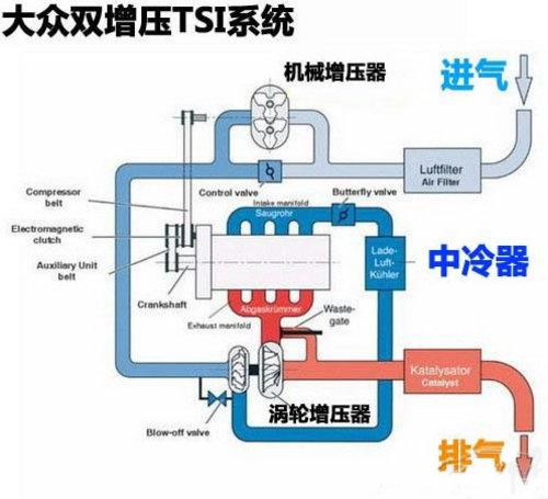 大眾TSI的含義:即Turbo-charging(渦輪增壓)、Super-charging(機械增壓)和Injection(燃油直噴)三個關鍵特色的首字母縮寫。也就是說,原汁原味的TSI,應當是具備三大技術(shù)的——渦輪與機械的復合增壓,加上缸內(nèi)直噴技術(shù)。