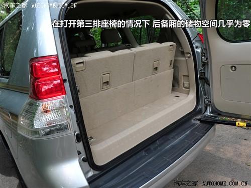在打開第三排座椅的情況下,普拉多后備廂的儲物空間已經(jīng)近乎于零了,所以滿載7人之后,應(yīng)該趕快把第三排座椅收回去,不會?請看上圖。收起第三排座椅同樣是兩步,先摳起座椅旁邊的機關(guān),椅墊就可以自動收回了,然后再摳起椅背上的開關(guān),放倒椅背就可以恢復如初了。