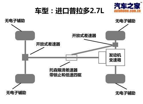 以下四驅系統(tǒng)介紹及測試只代表進口普拉多2.7L車型的水平,國產4.0車型四驅系統(tǒng)與之不同。