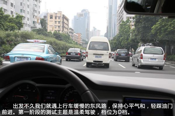 我們以D檔在市內(nèi)溫柔地行駛了約200公里,遇見紅燈必減速停車,絕不嘗試僥幸通過,堅(jiān)決不踩地板油,不急加速超車,行車電腦顯示百公里平均油耗為9.1L。雖然與廠家公布的油耗數(shù)據(jù)有明顯出入,但面對(duì)這走走停停的路況,能維持在百公里9L左右的水平,可以了。另外補(bǔ)充一下,由于測(cè)試當(dāng)天廣州處于高溫狀態(tài),路上地面溫度估計(jì)超50度,所以全程開空調(diào),消耗部分燃油。