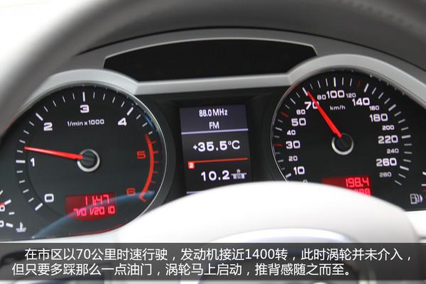 在市區(qū)內(nèi)以時(shí)速70公里行駛,發(fā)動(dòng)機(jī)轉(zhuǎn)速接近1400轉(zhuǎn),此時(shí)渦輪并未介入,但只要多踩那么一點(diǎn)油門,渦輪馬上啟動(dòng),推背感隨之而至,70~100公里時(shí)速瞬間完成。