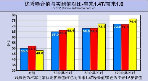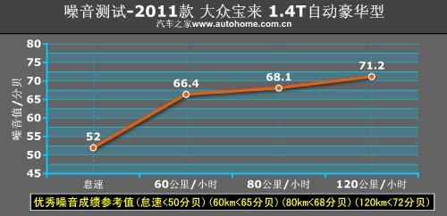 相信1.4T發(fā)動(dòng)機(jī)配合7速DSG的行駛特性大家都比較了解,車動(dòng)起來不過1200轉(zhuǎn)便從一擋切換至二擋,而之后的換擋動(dòng)作也都在2000轉(zhuǎn)之內(nèi)(日常駕駛)完成,因此發(fā)動(dòng)機(jī)噪音值會(huì)控制的很好,圖表中特意添加了之前測試的1.6L寶來的實(shí)測噪音值,可以看到除怠速之外都要比1.4T版本高出不少。美中不足的是與一些2.0L及更大排量的自然吸氣發(fā)動(dòng)機(jī)相比,在高速行駛時(shí)這臺(tái)1.4T發(fā)動(dòng)機(jī)傳到駕駛艙的某種震動(dòng)的響聲還是能察覺到的。