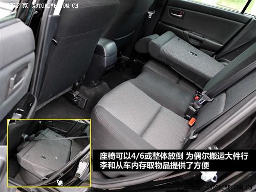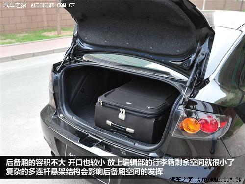 馬自達3后備箱容積不大甚至讓我感覺有些小,而且離地較高,女士在向后備箱裝較重物品時會比較費勁;不過后排座椅可以以4:6的比例放倒,如果偶爾搬運大件行李,這樣的設(shè)計會有所幫助,但是我認為能力還是有限。