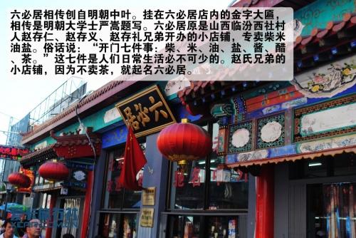漫步至大柵欄,無意間看到六必居。“醬園六必居為最,金字招牌歷兩朝!绷鼐幼灾频母鞣N風味醬菜大名是自不必說了,其中又以八寶菜、醬黃瓜、甜黃醬、醬甜瓜等最為有名。當年北京有“五大醬園”,即:六必居、天源、天義成、寶瑞、天章涌,各有特色,而今只有六必居、天源兩家了。 想要嘗嘗當年五大醬園的味道早已不能,只有在僅存的六必居和天源去找尋當年醬園的留香。