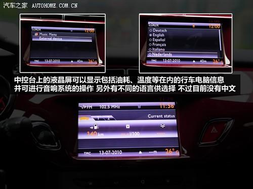 中控液晶屏可以顯示油耗和溫度等行車電腦信息,可對音響、藍牙系統(tǒng)進行操作,另外提供了不同種語言供用戶選擇,可惜的是目前沒有中文;圖片中沒有看到出GPS導航,不過官方數(shù)據(jù)顯示DS3高配車型帶有GPS。