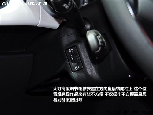 DS3帶有大燈高度調(diào)節(jié),位置在方向盤后的轉(zhuǎn)向柱側(cè)面,我們認為不僅操作起來有些不方便,而且想看到刻度有些困難。