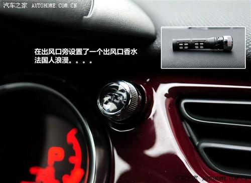 法國人的浪漫不僅體現(xiàn)在外形的流暢上,中控臺儀表盤旁設置了一個出風口香水槽,插入后即可隨空調(diào)將香氣散出。