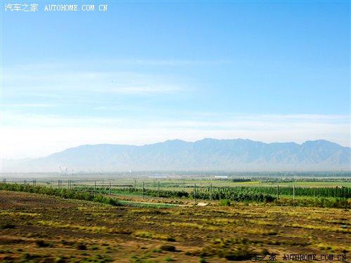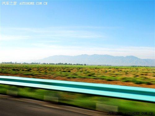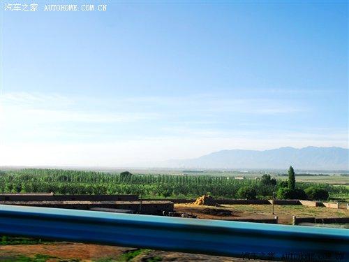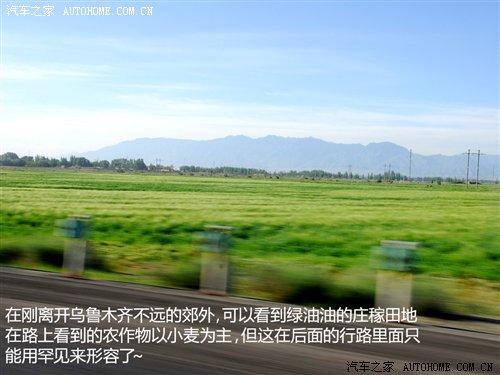 離開高區(qū)駛?cè)雵?guó)道,車窗外出現(xiàn)了不同尋常的景色。景物也隨著我們的前進(jìn)在不斷地變化。在剛離開烏魯木齊不遠(yuǎn)的郊外,可以看到綠油油的莊稼田地,一片片的小麥田地讓人目不睱接。