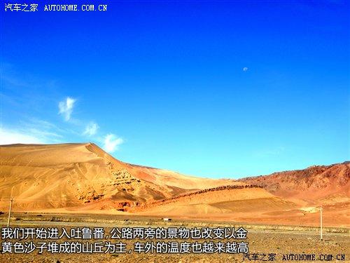 公路兩旁開始出現(xiàn)了以金黃色沙子堆成的山丘,車外的溫度也越來越高,窗外吹來陣陣的暖風(fēng),這也意味著我們開始進(jìn)入吐魯番了。在進(jìn)入吐魯番之前我們已經(jīng)經(jīng)過連了2個小時的趕路,為了安全起見,我們選擇了吐魯番游務(wù)服務(wù)中心休息,而車主和維修人員則開始忙忙碌碌地檢測車輛。