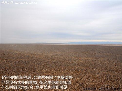 1個(gè)小時(shí)的車程后,公路兩旁不再是那土房子和綠綠的田地了,取而代之的是戈壁灘。此時(shí)公路兩旁也沒有了太多的景物,遠(yuǎn)處看到的是清晰的地平線,什么叫做天地結(jié)合或許此時(shí)你會深有體會。