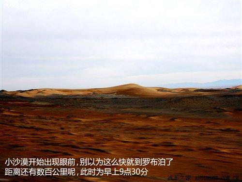 不知不覺我們已經(jīng)行駛了3個(gè)小時(shí)了,此時(shí)已經(jīng)是早上的9點(diǎn)30分了,小沙漠開始出現(xiàn)在路旁,但這只是一個(gè)開始,距離我們的目的地羅布泊還有數(shù)百公里的距離呢。經(jīng)過小休的我們突然間都打起了精神,因?yàn)檠诺さ孛惨呀?jīng)出現(xiàn)了...