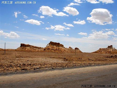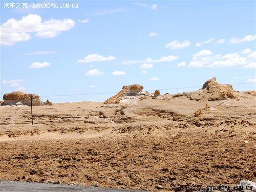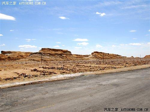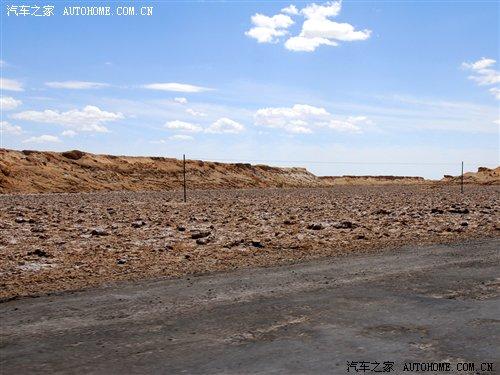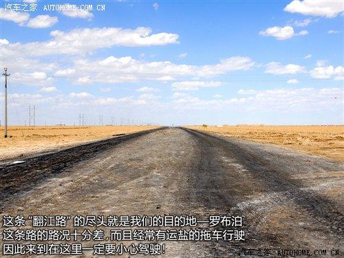 過了廣告牌以后,我們行駛的道路也發(fā)生了改變,省道已經到了盡頭,我們駛進了俗稱叫“翻江路”的柏油路面上。據當地的車主說,由于羅布泊是一個人煙稀少的地方,平時進出的都是一些好幾十噸的運鹽貨車,因此本來鋪好的柏油路已經變得破爛不堪,故有“翻江路”之稱。
