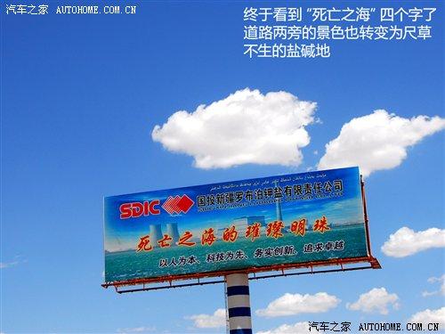 期待了數天的“死亡之!、羅布泊等字眼終于映入眼瞼,一個醒目的廣告牌就樹立在路旁。此時我們離羅布泊的距離也只有100多公里了,兩旁的景物像女人一樣,說變就變了,沙漠已經被一望無際的鹽堿地所取代。