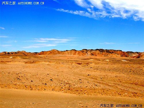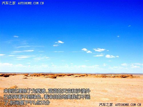 離開雅丹地貌后,我們的車隊繼續(xù)進發(fā),大約兩個小時的車程后景色有了較大的變化,公路兩旁是被陽光曬得閃閃發(fā)光的沙漠,還有就是藍藍的天空,此時已經是下午的1點15分了,看來我們的目的地離我們不遠了。