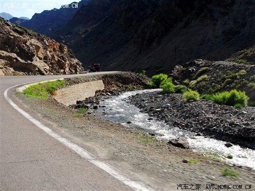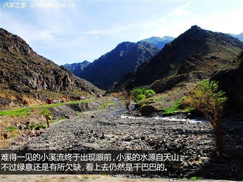在山路行駛的前段時間令人十分枯燥,山路兩旁都是光禿禿的巖石山,十分欠缺綠意,干巴巴的!唯一可以吸引眼球的就是山路旁邊的小溪流,據(jù)當?shù)剀囍鹘榻B這小溪流的水源自天山,十分冰涼。