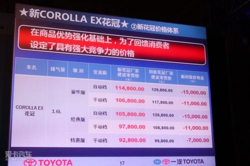 7月13日,也就是長春車展的前晚,一汽豐田改款花冠EX正式上市,新車共推出五款車型,新款花冠除了外觀上有明顯的變化外,配置也有所提升,而起步售價在老款的基礎(chǔ)上下調(diào)了7千元,高配車型的降價幅度更是高達1.5萬元,這也使得花冠將把性價比作為自己的主要競爭力,矛頭直指穩(wěn)坐乘用車銷量前三的悅動和新凱越。