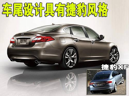 2011款英菲尼迪M在外觀設(shè)計上,吸取了在2009年日內(nèi)瓦車展上展出的Essence概念車的設(shè)計元素。帶有上下拱形線條的長方形格柵,向后拉伸的L形大燈,發(fā)動機蓋兩邊巨幅隆起的動感褶皺以及優(yōu)美流暢的腰線。新款M的車尾方面,第一印象給了我們一種強烈的捷豹風(fēng)格,收縮的臀部以及尾燈都讓我們想起了捷豹XK的動感車尾。