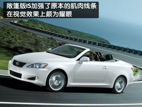 雷克薩斯IS硬頂敞篷版的車身前半部的造型設計,與轎車版本的IS車系擁有極為神似的設計,前保險杠、頭燈、后視鏡以即車門把手都和轎車版本的IS車型相同。在車身側面,敞篷版IS加強了原本的肌肉線條,無論是開篷后的拉風身影,或是關篷時的跑車線條,都充滿了跑車的動感效果;車尾部分,敞篷版IS則采用全新的LED尾燈設計,以區(qū)別和轎車版本的差異,在視覺效果上頗為耀眼。