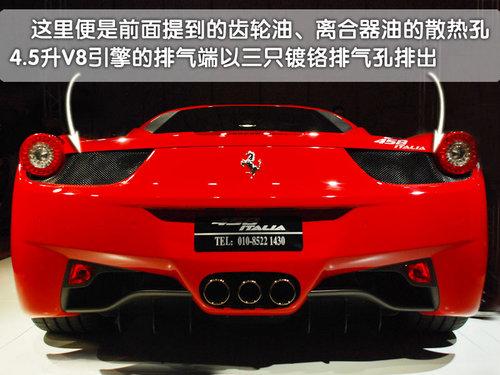 在458Italia的車尾兩側(cè),同樣分別設(shè)計有兩處通風(fēng)口,當(dāng)氣流最終達到車尾的時候458Italia的設(shè)計者再一次將氣流轉(zhuǎn)變?yōu)橛幸嬗邶X輪油和離合器油散熱的氣流,從車尾將散熱器的熱量帶走。