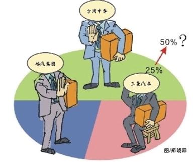 “這個(gè)問(wèn)題很敏感!甭(tīng)到記者提及此問(wèn)題,臺(tái)灣中華汽車副總經(jīng)理黃重洲頓時(shí)出言謹(jǐn)慎,“既然4年前已讓出25%,那現(xiàn)在應(yīng)該還會(huì)維持現(xiàn)狀的。”