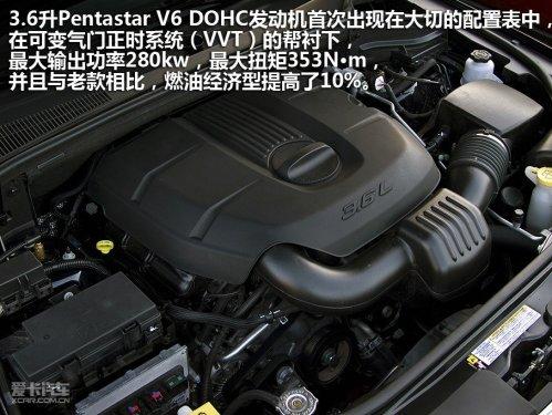 Manley曾說:“你在各種路況下都能看到大切諾基!毙麓笄惺紫扔脙煽畎l(fā)動機和變速箱來印證Manley的這句話。3.6升Pentastar V6 DOHC發(fā)動機首次出現(xiàn)在大切的配置表中,在可變氣門正時(VVT)的幫襯下,能發(fā)出210千瓦的最大功率和347牛米的最大扭矩,并且與老款相比,燃油經(jīng)濟型提高了10%,官方給出的拖車牽引能力達到了2258公斤。