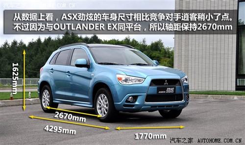 ASX勁炫和OUTLANDER EX同平臺(tái)且軸距相同,但在車身尺寸、離地間隙、以及接近角和離去角上都有差異,從下圖中可看出數(shù)據(jù)上的差別。
