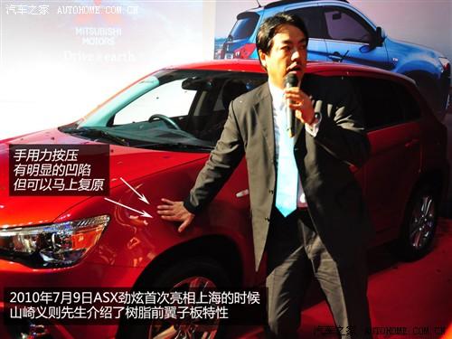 在7月初,日版ASX勁炫首度亮相上海的時(shí)候,三菱汽車銷售(中國(guó))有限公司副總經(jīng)理山崎義則代表廠方,介紹了ASX勁炫的一個(gè)小賣點(diǎn)——樹脂前翼子板!這種材料可以在減輕車身重量的同時(shí),富有彈性的特性,也能降低因?yàn)檩p微碰撞而引起的部件損壞。