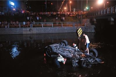 前晚(7月21日)11點(diǎn),北京朝陽區(qū)酒仙橋路壩河橋梁處,一輛高速行駛的保時(shí)捷凱宴轎車先后與迎面而來的兩車相撞后,沖破河邊護(hù)欄,倒栽入水深半米的河中。車內(nèi)一男子被路人救出后,聲稱尚有3人被困。消防員隨后“地毯式”排查兩小時(shí),但并未發(fā)現(xiàn)車內(nèi)及水中有人。該男子與被撞兩車的司機(jī)不同程度受傷,其所述被疑不實(shí)。