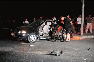 “有‘嗡嗡’的馬達(dá)聲,只看到一道黑影閃過!蹦繐粽叩耘空f,當(dāng)時(shí)酒仙橋路上一輛黑色轎車由南向北疾速行駛,“咣”地一聲悶響,迎面將一輛羚羊轎車撞得原地打轉(zhuǎn),隨后繼續(xù)前行。緊接著,不遠(yuǎn)處再次傳來碰撞聲,一輛逆向車道上的出租車“被黑轎車頂回去三四米”。黑轎車隨即變向,撞壞橋邊護(hù)欄墜河。