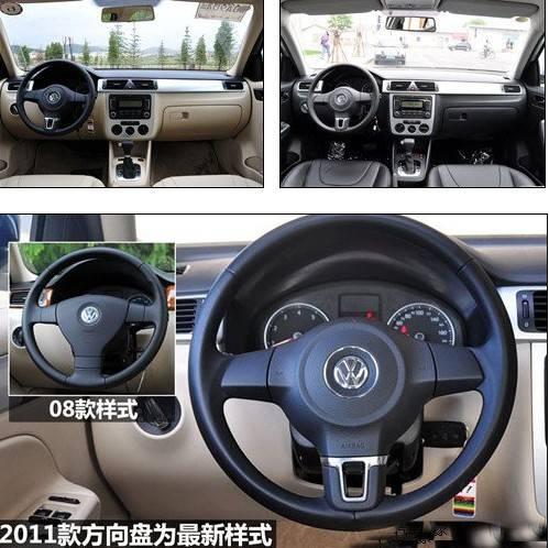 相比老款帶有木紋裝飾的內(nèi)飾,2011款寶來(lái)有黑色內(nèi)飾和上深下淺兩種內(nèi)飾可供選擇,中控有兩處最大的改變,一個(gè)是將老款車型上被人詬病的老氣的木紋裝飾改為了更加時(shí)尚的金屬貼片。另一個(gè)則是方向盤(pán)換為了和高爾(報(bào)價(jià)圖片參數(shù))夫(報(bào)價(jià)圖片參數(shù))6相同的家族最新樣式。