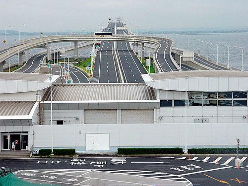 建在人工島上的“海螢”車庫是東京的旅游景點之一。這里可以一覽東京的全景,是日本最長海底隧道東京灣的一個休息站,歷時30年耗資112億美元修建而成。