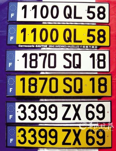 法國(guó)是最早公開使用汽車牌照的國(guó)家之一,1892年8月14日頒布《巴黎警察條例》之后,汽車牌照的發(fā)放變得正規(guī)和制度化。按照《條例》的規(guī)定,金屬牌照上必須包括車主姓名、地址和登記的號(hào)碼等內(nèi)容,要求掛在汽車左側(cè)隨時(shí)都能看見的位置。作為歐盟成員,法國(guó)新式牌號(hào)系統(tǒng)用的是“字母-數(shù)字-字母”的組合方式,除了左邊的歐盟標(biāo)志和F保持不變外,右邊的省份數(shù)字已經(jīng)不作規(guī)定,車主可以選擇任意省份數(shù)字以及地區(qū)乃至省份標(biāo)志圖案,問(wèn)題就是你即便是住在巴黎,也可以加其他任何省份的數(shù)字。以后即便看到車牌號(hào)也不能確定車主來(lái)自于哪里了。而且新牌號(hào)系統(tǒng)是終生制的,即便遷居到其他地方也保持車牌號(hào)不變,省了不少麻煩。