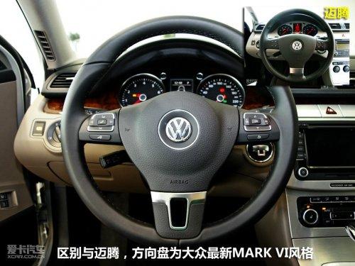 坐進(jìn)PASSAT旅行版的車(chē)廂之內(nèi),雖然整體設(shè)計(jì)布局與國(guó)產(chǎn)邁騰并無(wú)二致,但明顯還是能感受到一些不同之處。最直觀的感受來(lái)自于方向盤(pán),2011款邁騰的方向盤(pán)與老款一致,并未發(fā)生變化。而PASSAT旅行版則裝備了出現(xiàn)在國(guó)產(chǎn)高爾夫6上的大眾MARK VI風(fēng)格方向盤(pán)。這一變化給車(chē)廂增添了一些新鮮的氣息,眾多的多功能按鈕非常好用,換擋撥片則令駕駛樂(lè)趣大幅增加。
