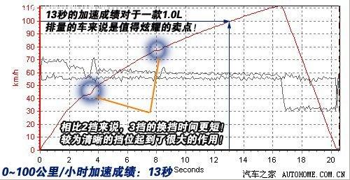 發(fā)動機(jī)動力比較充沛,1.0L發(fā)動機(jī)在5擋手動變速箱的配合下將車在13秒內(nèi)從0加速到100Km/h,變速箱換擋入位比較順暢,帶來了良好的動力銜接,加速成績比較突出。但是偏長的剎車距離有些力不從心,代步工具不必激烈駕駛。
