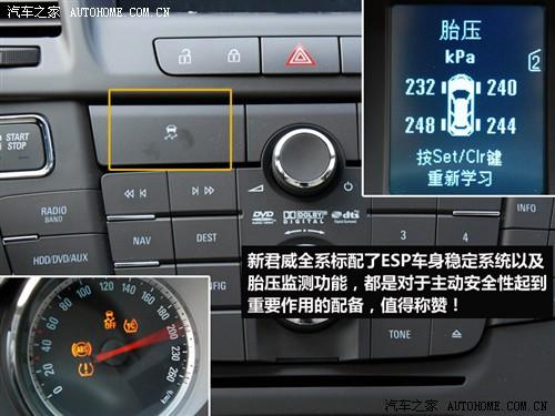 君威全系都備有胎壓監(jiān)測系統(tǒng),直接式胎壓監(jiān)測將傳感器植入輪胎內(nèi),實(shí)時(shí)監(jiān)控每條輪胎的胎壓狀況,駕駛員可以從行車電腦中直接調(diào)出壓力數(shù)值,做到心中有數(shù),雖然有時(shí)會有數(shù)值不準(zhǔn)的狀況發(fā)生。另外2010款君威全系都配備了安吉星系統(tǒng),購車者可免費(fèi)使用一年,體驗(yàn)定位、呼叫和緊急救援等服務(wù)。