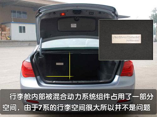 在外觀部分的辨識(shí)性上,混合動(dòng)力7系轎車采用了唯一的海藍(lán)色漆面噴涂。配合分布在車身側(cè)面、車尾的“Active HyBrid 7”字樣,讓大家很容易就能夠看出這是一臺(tái)與眾不同的寶馬7系轎車。而由于電池組的關(guān)系這臺(tái)7系混合動(dòng)力車型的行李空間也有所減少,但是相對(duì)于7系轎車充足而寬大的后備箱容積來(lái)說(shuō)減少的部分不會(huì)為實(shí)際的使用泰來(lái)太多的不便。