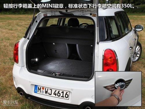既然廠方說Countryman是最實用的MINI,那么行李箱空間肯定會成為用戶仔細考量的一處。輕按行李箱蓋上的MINI徽章,標準狀態(tài)下行李箱空間有350L,通過放倒座椅可擴容至1170L,在行李箱底部還有一個隱藏的儲物格。怎么樣,夠用了吧!