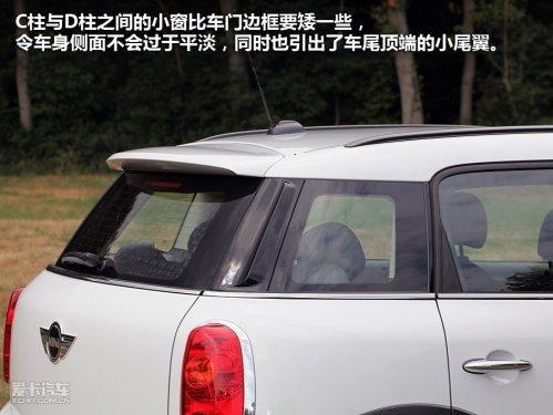MINICountryman的造型比例比較協(xié)調(diào),車頭部分所占的比重剛剛好,前風擋的角度比較大,在加上直來直去的車頂線條,Countryman看上去依舊很干練,當我們看慣了路上跑的MINI Cooper之后,也不會覺得Countryman有任何臃腫的感覺。C柱與D柱之間的小窗比車門邊框要矮一些,令車身側(cè)面不會過于平淡,同時也引出了車尾頂端的小尾翼。環(huán)繞車身一周的黑色塑料裝飾無疑顯露出Countryman的跨界一面。