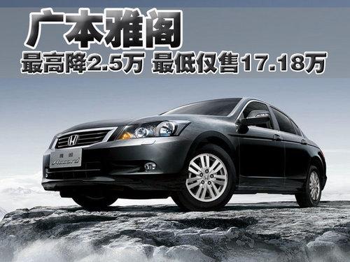 當(dāng)提到中級(jí)車型大家也許會(huì)不約而同的想起廣本雅閣,新雅閣憑借其大氣的外觀、舒適的空間和豪華的配置對(duì)于中級(jí)轎車市場(chǎng)的構(gòu)成起到了舉足輕重的作用。去年,廣汽本田又對(duì)第8代雅閣進(jìn)行了小改款,對(duì)原來車型的配置有一定程度提升,部分車型增加了智能鑰匙和后遮陽板等配置,提高了雅閣整體車型的性價(jià)比。近日根據(jù)網(wǎng)上車市價(jià)格監(jiān)測(cè)系統(tǒng)顯示,目前雅閣現(xiàn)金最高優(yōu)惠2.5萬元,最低售價(jià)逼平17萬。具體價(jià)格以及優(yōu)惠幅度如下: