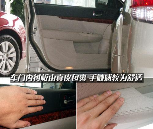 新傲虎車門內(nèi)飾板上方采用了一般的軟性材料,手感一般,同時桃木面板裝飾增添了車內(nèi)檔次。下方采用了米色真皮包裹,內(nèi)部的填充物也較為厚實(shí),手觸感非常舒適。