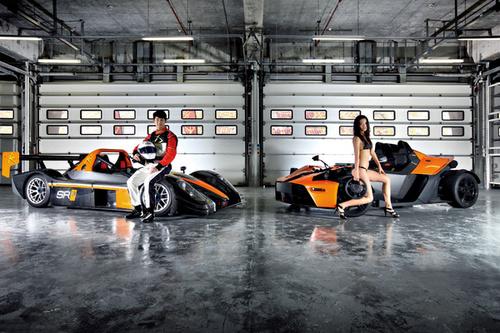 且拋開合法與否的問題不談,光憑X-BOW現在這副尊容,我實在懷疑如果一旦將它開上馬路,駕駛員的生存幾率到底有多高。沒錯,它的樣子實在是酷斃了,幾塊顏色鮮艷而且剪裁夸張的玻璃鋼擋板覆蓋著碳纖維車體,其效果當然如衣不裹體的比基尼美女。也許是為了營造更夸張的視覺沖擊,也許只是為了加深這款產品與摩托車的某中淵源,KTM——這家來自奧地利的摩托車巨匠還特意將前懸架暴露在外,另外車燈也是像老式汽車那樣嵌在車身上的。簡而言之,X-BOW給人的感覺就是一臺準賽車。明白了不?