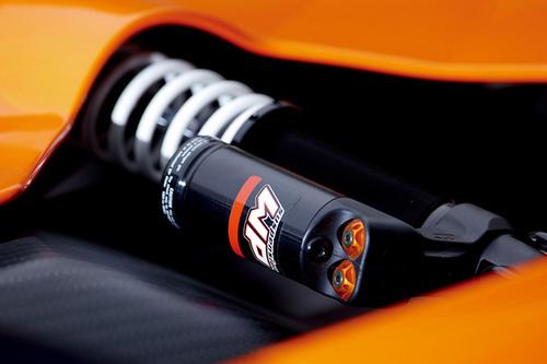 好吧,對(duì)于一臺(tái)純賽車我還能指望什么呢,舒適性還是內(nèi)飾的美感?顯然這些都不是Radical所關(guān)心的問題。這臺(tái)車所用的方向盤比X-BOW上的直徑還小,另外方向盤的背面還有換檔撥片,但技師告訴我說這并不是什么時(shí)髦的雙離合器或者電子序列式變速結(jié)構(gòu)。它仍然是很傳統(tǒng)的純機(jī)械式序列變速箱,為了延長變速箱的使用壽命,降檔時(shí)最好使用離合器,另外在升檔時(shí)前3個(gè)檔也最好踩離合器。最后的忠告則是千萬不要讓發(fā)動(dòng)機(jī)超過轉(zhuǎn)速,因?yàn)檫@臺(tái)發(fā)動(dòng)機(jī)不像X-BOW上的TT發(fā)動(dòng)機(jī)那樣擁有轉(zhuǎn)速保護(hù)裝置。