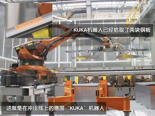 一汽大眾的鋼板原料會來自德國、韓國以及中國,為了防止細(xì)微的灰塵影響沖壓過程中的質(zhì)量,全部的鋼板原料都是密封的過程中運送到這里的,在制造之前才會開封通過來自德國的KUKA機(jī)械手放進(jìn)沖壓機(jī)床進(jìn)行沖壓。機(jī)床屬于一機(jī)雙模,一起沖壓就會出來兩個配件。沖壓機(jī)床的力量達(dá)到了2000噸以上,配件在瞬間就會形成整體并保證原始的強(qiáng)度。