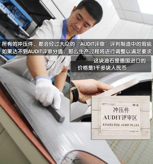 在生產(chǎn)線的中間是工作人員的監(jiān)控區(qū)域,工作人員可以通過監(jiān)視器看到整個沖壓車間的的生產(chǎn)狀況。而在每一個沖壓機(jī)床的末端,工人會對每一個沖壓出來的配件進(jìn)行粗檢。然后由一汽大眾的AUDIT評審專家,對配件進(jìn)行“比客戶更加苛刻”的標(biāo)準(zhǔn),去檢查配件的公益標(biāo)準(zhǔn)。