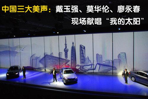 晚會的高潮部分要屬中國三大男高音:戴玉強(qiáng)、廖昌永和莫華倫從亮相的5系中走出來獻(xiàn)唱的著名歌曲“我的太陽”。在三位歌唱家投入演唱的同時(shí),身后的幕布緩緩升起!棒浯涔魈枴庇屋嗰傔^,讓現(xiàn)場再次沸騰!