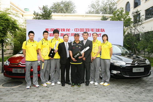 東風雪鐵龍副總經理魏文清為中國羽毛球隊交付“榮耀座駕”C5和“冠軍座駕”世嘉