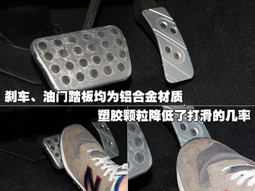 睿翼轎跑駕駛員下方的剎車和油門踏板均為鋁合金材質(zhì),且大小適中,腳踩剎車與油門的行程適中,踏板上的塑膠顆粒降低了打滑的幾率。