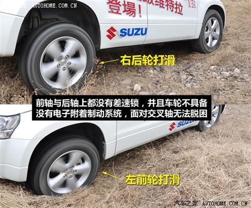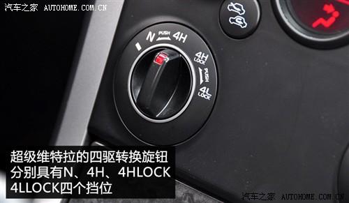 超級(jí)維特拉帶有中央差速器,正常行駛時(shí)為全時(shí)四驅(qū)模式,并可通過(guò)位于中控臺(tái)上的旋鈕來(lái)鎖止中央差速器,不過(guò),該車并沒(méi)有左右輪間限滑裝置,面對(duì)交叉軸項(xiàng)目時(shí)還是無(wú)能為力,但是依靠發(fā)動(dòng)機(jī)強(qiáng)勁的動(dòng)力行駛在普通的非鋪裝路面上還是問(wèn)題不大的。